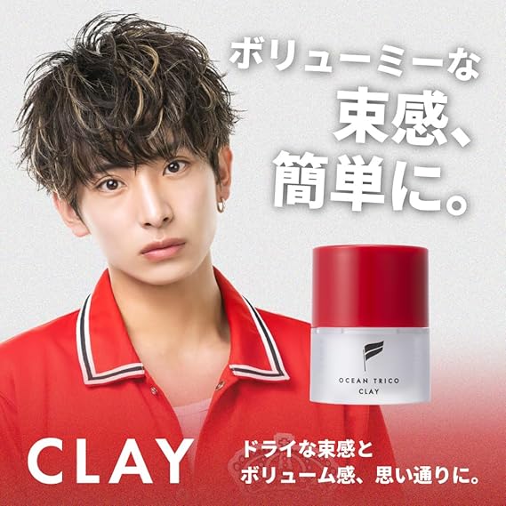 【Point:ワックスの特徴】CLAY(クレイ):長めのレングスにも使えるクレイワックス。ドライでボリューム感のある立体感・ちょうどいい太さの束感を演出。