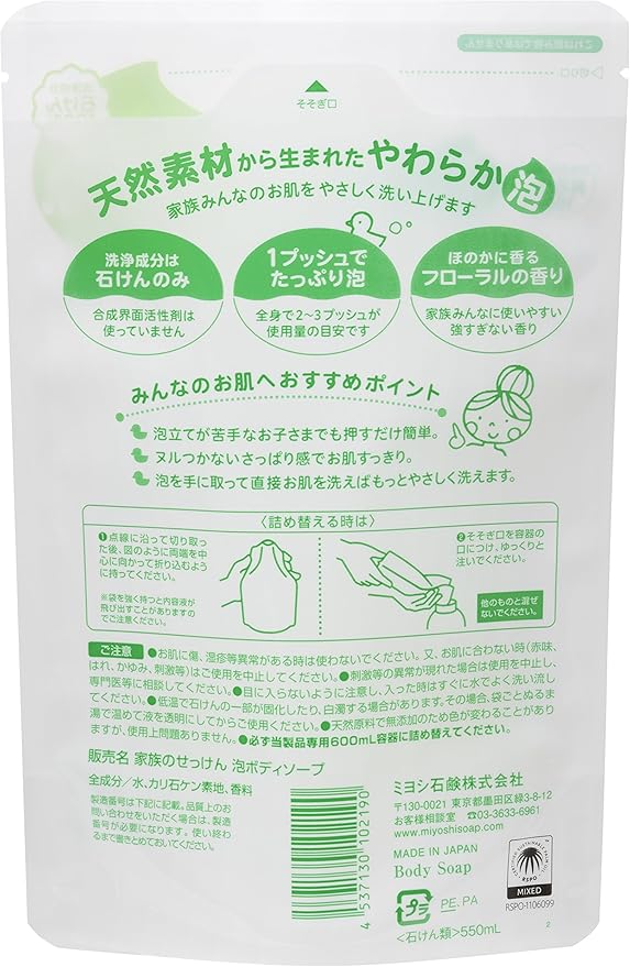 MIYOSHI ミヨシ石鹸 家族のせっけん 泡のボディソープ 詰替 550ml a