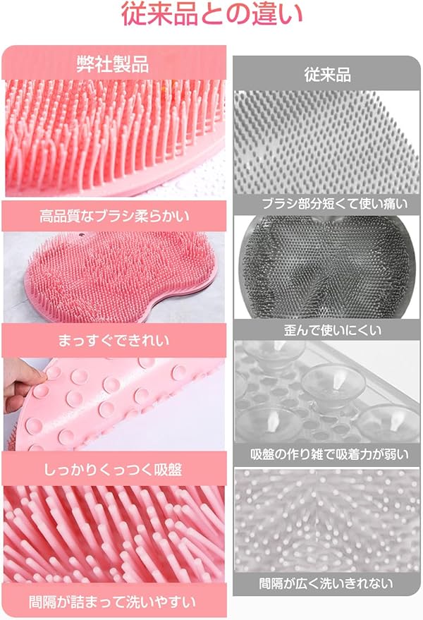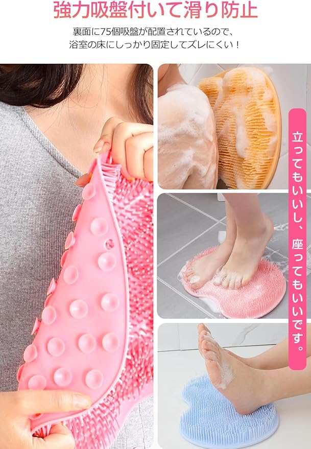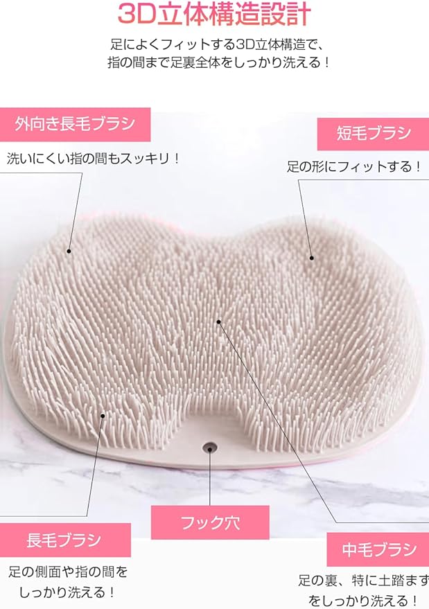 ■【3D立体構造設計】足によくフィットし、指の間まで足裏全体をしっかり洗える! ■【強力吸盤付いて滑り防止】凹凸や指の間まで足裏全体をしっかり洗える!