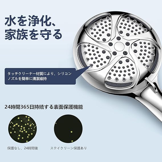 【お風呂の水質について知るべき事実】乾燥肌・アレルギー症状、髪のダメージや絡みつき、お風呂の嫌な臭いにお悩みではありませんか?水道水には残留塩素、サビ、重金属(鉛Pb・水銀Hg・ニッケルNi・クロムCr)などの不純物が含まれています。米国の80%地域で硬水が使用され、コミュニティ給水システムの70%が塩素処理を実施します。研究データによると、人体は飲用水だけでなく、入浴時の皮膚からも水分を吸収(65%以上)。残留塩素を含む入浴水を長期使用すると、様々な肌・頭髪トラブルの原因になります。これが入浴