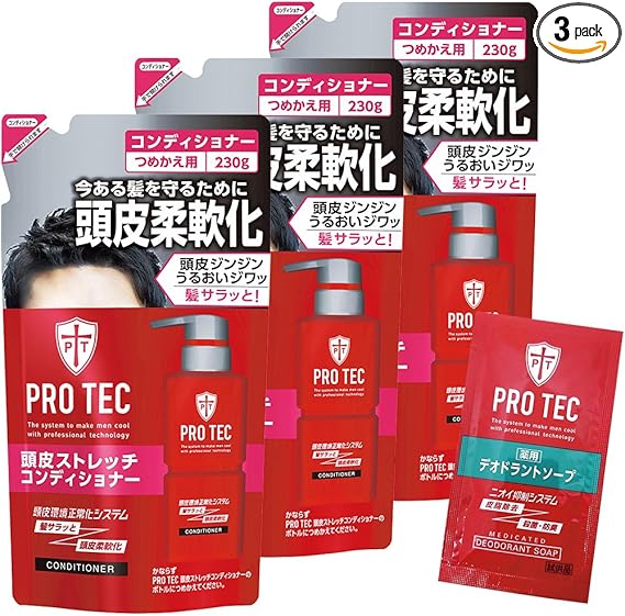 【Amazon.co.jp限定】 PRO TEC(プロテク) 頭皮ストレッチ コンディショナー 詰替え用 230g×3個+デオドラントソープ1回分おまけ付 a