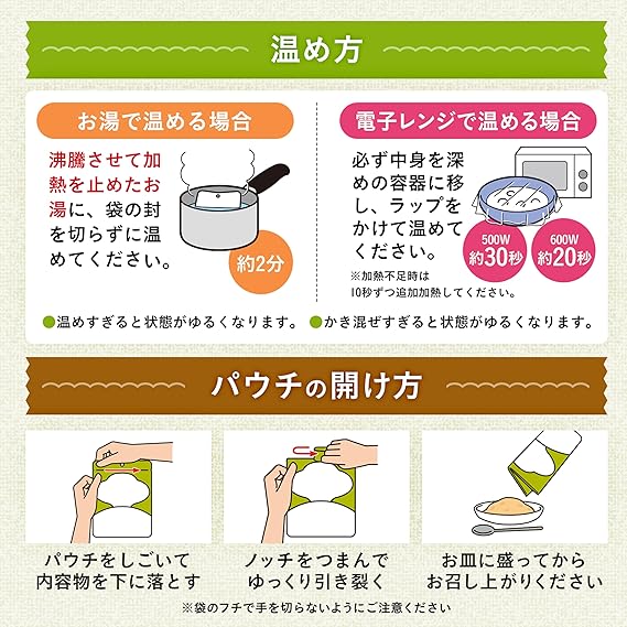 原材料:野菜(グリンピース、たまねぎ)、卵白加工品(卵白、植物油脂、砂糖、果糖ぶどう糖液糖)、マーガリン、植物油脂、脱脂粉乳、砂糖、酵母エキスパウダー、食物繊維、食塩、香辛料、増粘剤(加工でん粉、キサンタンガム)、卵殻カルシウム、調味料(アミノ酸)、ビタミンC、(原材料の一部に小麦・大豆を含む)