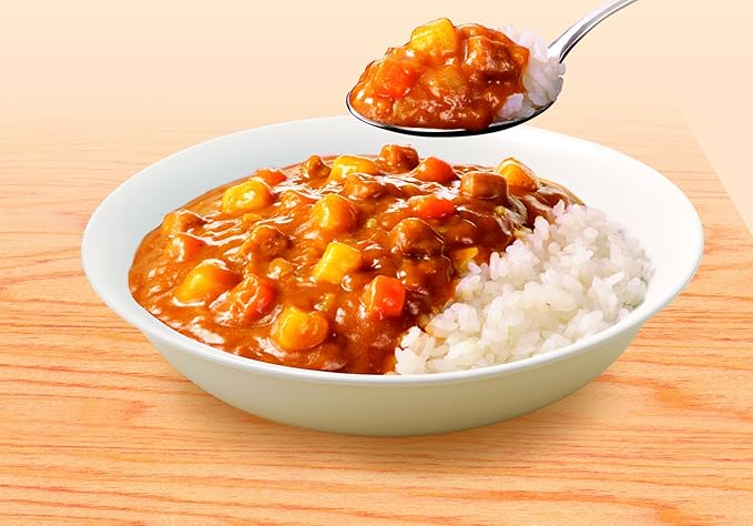 原材料:野菜(じゃがいも、人参)、炒め玉ねぎ(玉ねぎ、なたね油)(国内製造)、砂糖、豚肉、トマトペースト、カレー粉、食塩、ポテトフレーク、ポークエキス、パーム油、酵母エキス、にんにく/糊料(加工でん粉)