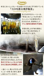 南部どりを使用した、ごろっとチキンのバターチキンカレー。本当に美味しいカレーをお届けする為に守り続けている「コスモ直火焼き製法」 手間を惜しまず味を犠牲にしない「直火焼き製法」で作り続けています。