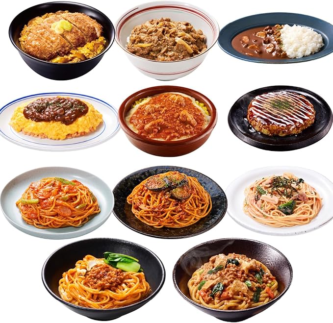 完全メシDELI 日清食品 バラエティ 11品セット かつ丼 牛丼 欧風カレーライス ナポリタン たらこパスタ ボロネーゼ 汁なし担々麺 デミオムライス チキンドリア 肉味噌まぜうどん お好み焼 特製ミックス玉 各1食 冷凍弁当 冷凍食品 たんぱく質 食物繊維 a