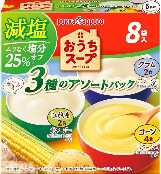 ポッカサッポロ食品 おうちスープ 減塩3種アソート8袋入箱 × 5箱 a