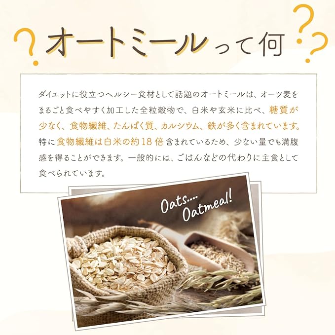 1分で美味しく食物繊維!即席タイプのカップオートミール。ごはんやパンなどいつもの主食と置き換えてお召し上がりください。