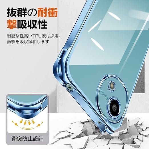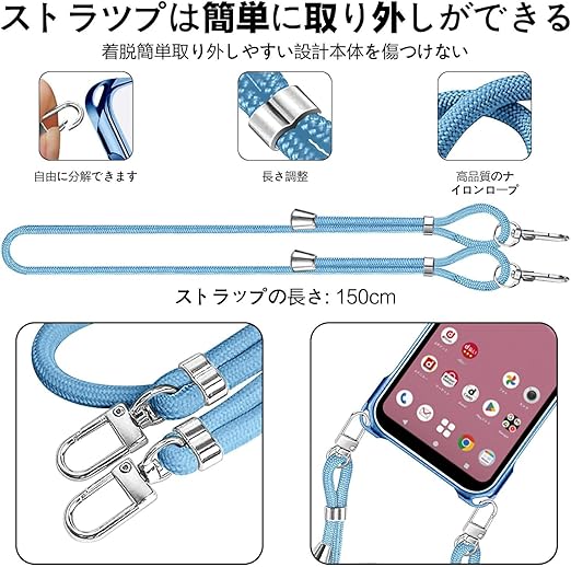 AQUOS Wish 5 用 ケース クリア ショルダー スマホケース アクオス ウィッシュ 5 カバー 肩掛け 縄掛け 透明 TPU 薄型 耐衝撃 wish5 携帯ケース 紐付き 斜めがけ 着脱可 織りストラップ ネックストラップ 縦/横 2WAY 長さ調整可能 取り外し可能 落下防止 紛失防止 かわいい おしゃれ(ブルー) a