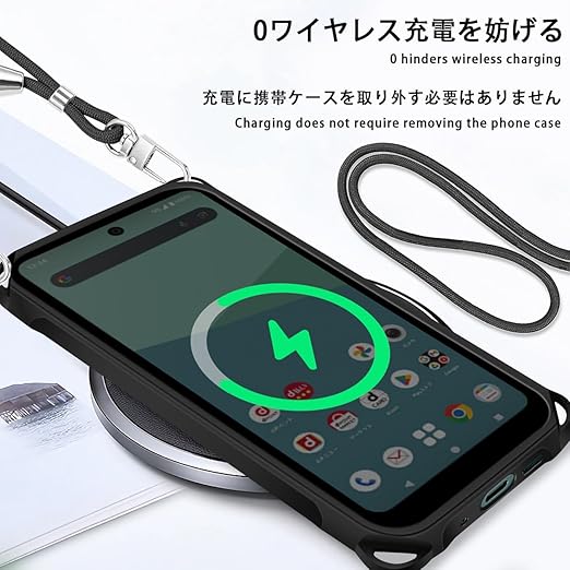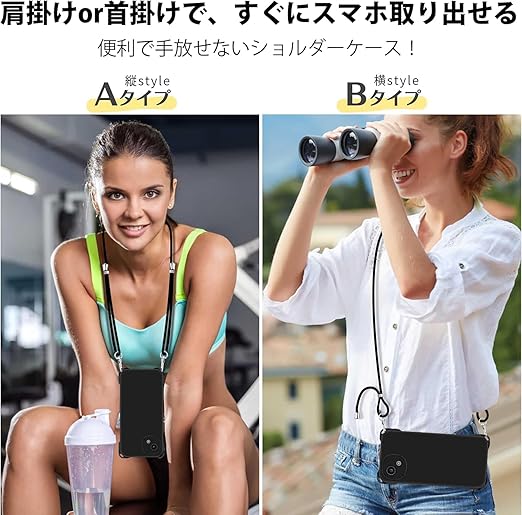 AQUOS Wish 5 用 ケース ショルダー スマホケース アクオス ウィッシュ 5 カバー 肩掛け 縄掛け TPU 薄型 耐衝撃 wish5 携帯ケース 紐付き 斜めがけ 着脱可 織りストラップ ネックストラップ 縦/横 2WAY 長さ調整可能 取り外し可能 落下防止 紛失防止 かわいい おしゃれ(マットブラック) a
