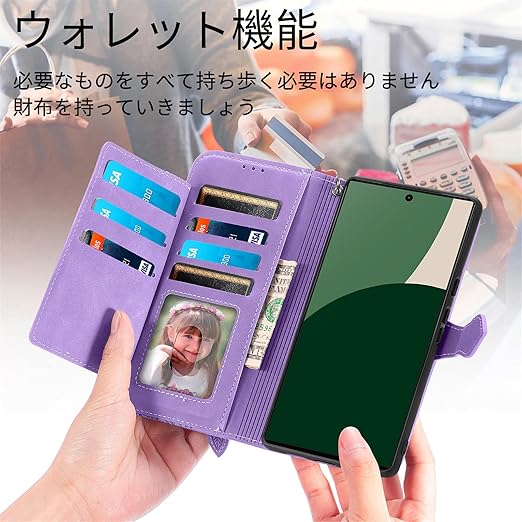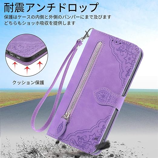 for AQUOS wish 5 ケース 手帳型 ビジネスフリップノートレザーケースシンプルなレトロなファッション携帯電話ケース防水と汚れた携帯電話ケース多機能財布収納付きスタンド携帯電話シェルPUレザー保護カバー耐久性のある摩擦(パープル) a