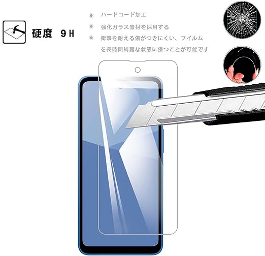 【表面硬度9H】カッターなどの鋭利なものを当たってもキズが付きにくくて高い強度を持ち表面硬度9Hが特徴です。万が一の破損時も飛散防止加工によって破片はフィルムに張り付いた状態で破片がほとんど飛び散らない安全性の高いガラスになっています。