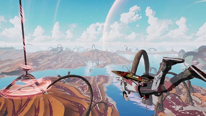 奇妙な惑星での冒険の相棒は、超高速のホバーボード。惑星に住まう凶悪な生物に立ち向かうには、武器のキーターの強化が欠かせない。