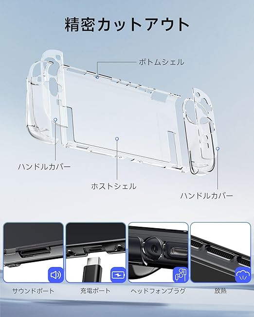 Switch2対応クリアケース ドック対応 Switch 2 Joy-Con 2 カバー 保護カバー 透明 TPU+PC材質 エア・フィット 薄型 軽量 透明 超耐衝撃 指紋 気泡ゼロ 傷防止 スイッチ 2(クリスタル・クリア) a
