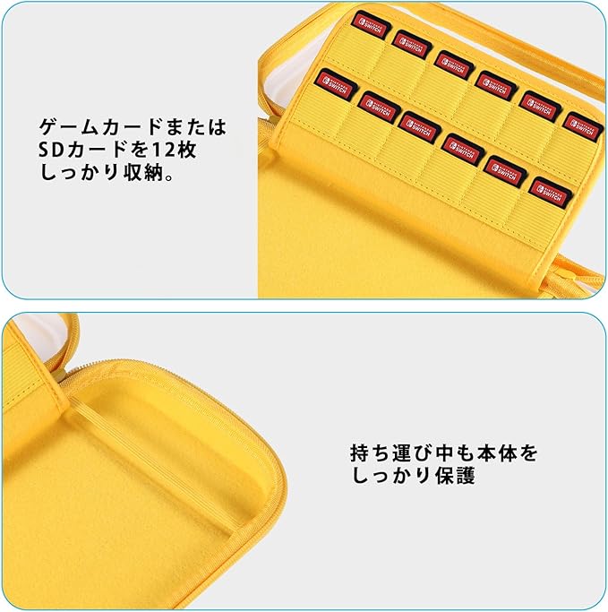 Gearsir 【令和7年新登場】Switch2対応 ケース スイッチ2専用クリアキャリーケース EVAハードシェル 軽量Switch 2専用 スリムハードポーチ スイッチ 2対応 透明収納バッグ 保護 大容量 防塵 防水 防振 12ゲームカードスロット ハンドル付き携帯便利 旅行には必須 (イエロー) a