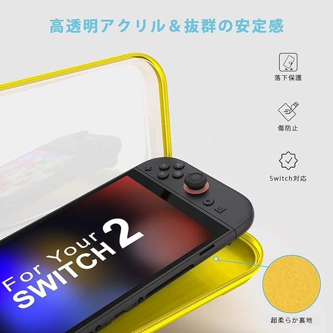 【スタイリッシュなクリアデザイン】中身が見えるHD透明仕様で、クールなSwitch 2本体をおしゃれに収納・保護しながら魅せることができます。持ち歩くだけで注目を集めるデザインです。