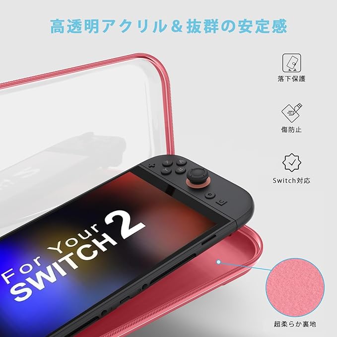 【スタイリッシュなクリアデザイン】中身が見えるHD透明仕様で、クールなSwitch 2本体をおしゃれに収納・保護しながら魅せることができます。持ち歩くだけで注目を集めるデザインです。