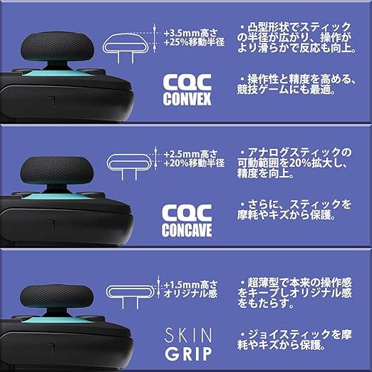 「左右で異なる操作感も楽しめる」左右で異なるキャップを装着すれば、好みに応じた操作感を調整可能。こだわり派ゲーマーにもぴったり。