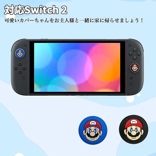 Mosasa For Switch 2 アナログスティックカバー スティックカバー シリコン 可愛い おしゃれ 保護カバー 耐衝撃 滑り止め 親指グリップキャップ (4個セット,ブルー+ブラック) a