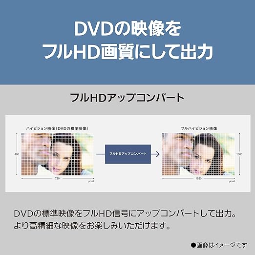 高画質映像が楽しめるフルHDアップコンバートで高精細な映像が楽しめる。1080/24p出力、Deep Color対応
