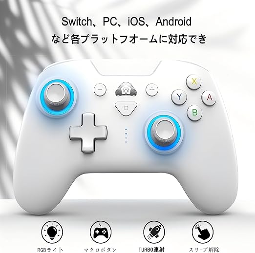 Switch コントローラー 自動連射機能 背面ボタン付き マクロ機能 Bluetooth接続 6軸ジャイロセンサー 7色RGBライト 1000mAhバッテリー 長時間使用 4段階HD振動 Switch1/Switch2/Android/PC(有線)/iOSに対応 日本語取扱説明書付き PeriphX スイッチ プロコン 全機能搭載 洗練されたデザイン かわいい配色 a