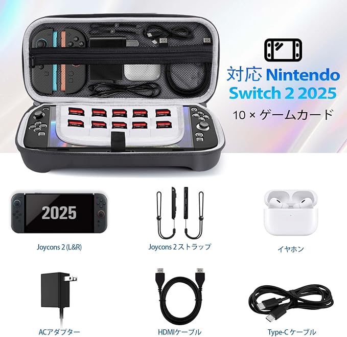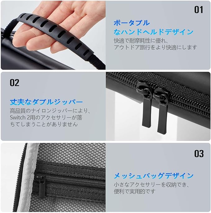 専用設計: Nintendo Switch 2対応専用ケースです。旅行や保管時にSwitch 2用とそのアクセサリーを包括的に保護し、シェルの絶妙なエンボスパターンがよりファッショナブルにします。