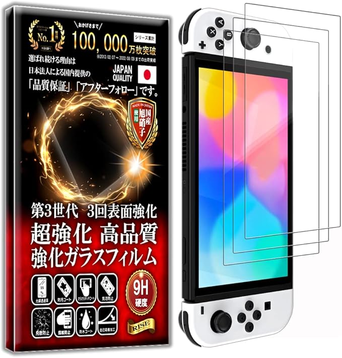 【日本AGCガラス】【3枚入】 フィルム Switch 有機EL モデル/Switch OLED ガラスフィルム 硬度10H RISE 保護フィルム 高透過 高光沢 日本製 旭硝子 2.5Dラウンドエッジ 自動吸着 気泡ゼロ 飛散防止 指紋防止 撥水撥油 3D タッチ a
