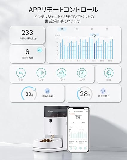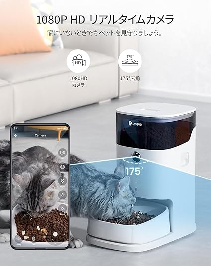 PETGUGU 自動給餌器 猫 カメラ付き 3.5L大容量 定時定量 APPインテリジェント監視 食事データ記録 多重鮮度保持 遠隔給餌 音声録音 防湿設計 手作りの陶器皿 犬 猫に適した自動餌やり機 獣医師推奨 PF2 a