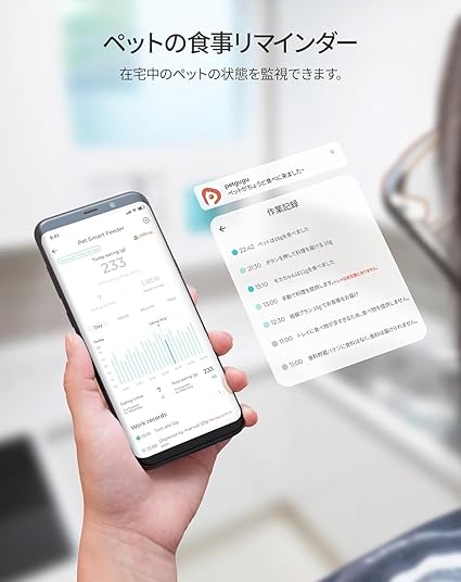 スマート給餌と科学的管理:petguguアプリから餌の時間と量を精密に制御。設定した計画通りにキャットフードやドッグフードを自動餌やり機で供給し、手動での餌やり手間を解消します。さらに、petguguアプリで給餌時間や回数、給餌量を記録し、給餌データを分析することで、飼い主様が愛するペットに最適な健康管理プランを科学的に作成するお手伝いをします。猫餌自動システムで、忙しい日でも安心してペットの健康を守れます。