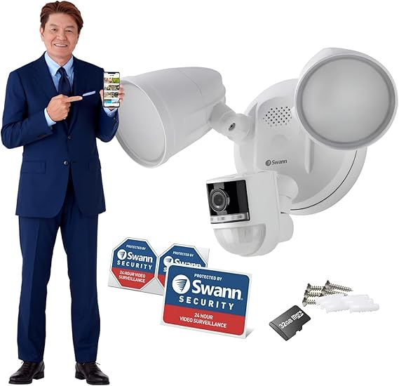 日本正規代理店品 Swann 4K WiFiカメラ フラッシュライト搭載 セキュリティカメラ 熱検知 動作検知機能 双方向通話 IP65 屋外 防犯カメラ SWIFI-4KFLOCAM a