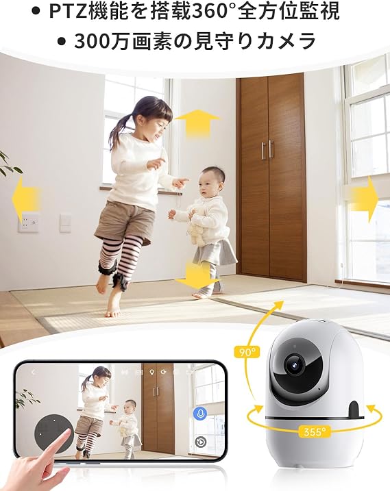 【5G/2.4G WiFi対応】JUFLSKY 防犯カメラ ペットカメラ 300万画素 見守りカメラ 360°PTZ機 iPhone/Android 双方向通話 人体検知 動体検知 暗視機能 TFカード/クラウド アレクサ 24h常時録画 スマホ対応 警報通知 家族共有 ベビーモニター 室内 猫犬 赤ちゃん 年寄り介護 留守番 日本語説明書 (白) a