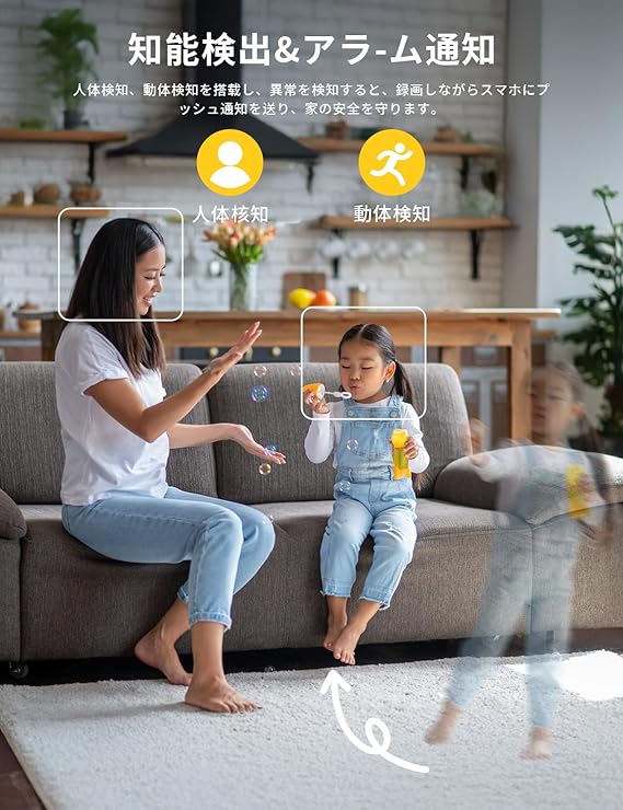 【360°自動追跡・2K】防犯カメラ 室内はAI搭載の360°自動首振り機能で、ペットの動きや室内の死角をリアルタイムにキャッチ!スマホ操作で上下左右にスムーズにカメラを制御し、0°超広角レンズが広範囲をカバーし、離れた場所でも見守りカメラとして家族の安全を24時間サポート。300万画素(2K)のCMOSセンサーを搭載します、2304×296Pの高解像度。