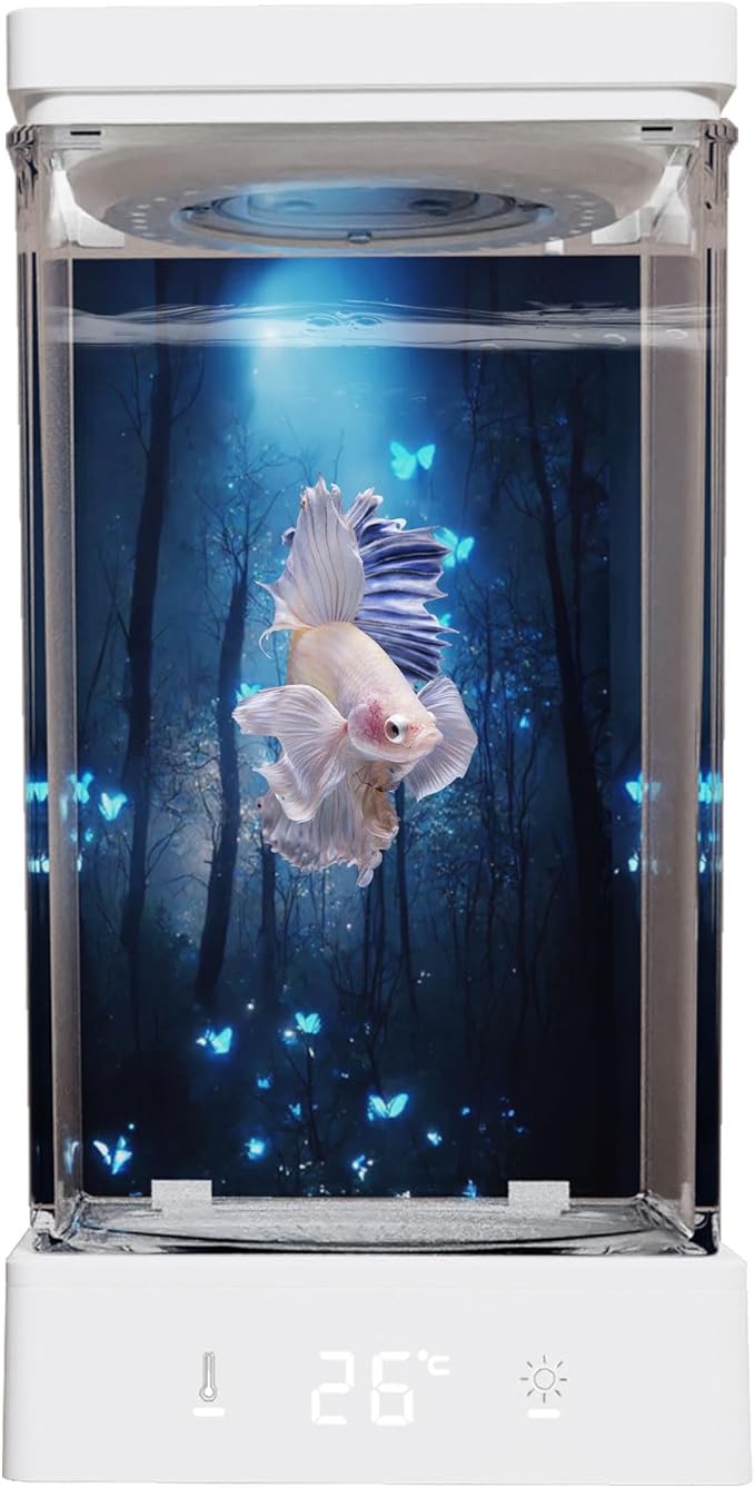 小型ベタ水槽 1.4Lコンパクト水槽キット 20-30°C温度設定 LEDライト付き 水換え簡単 セットアップ・メンテナンス簡単 スタータータンク最適 ホワイト a