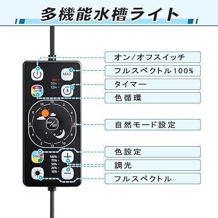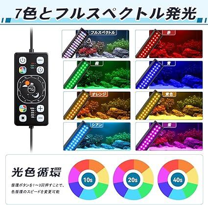 hygger 水槽ライト 30-45CM対応 24/7自然モード 時間設定可能 6/10/12Hタイマー 7色ライト+フルスペクトル 5段階明るさ調整 7色循環点灯 60LED アクアリウムライト 防水 観賞魚飼育 水草育成用 14W a