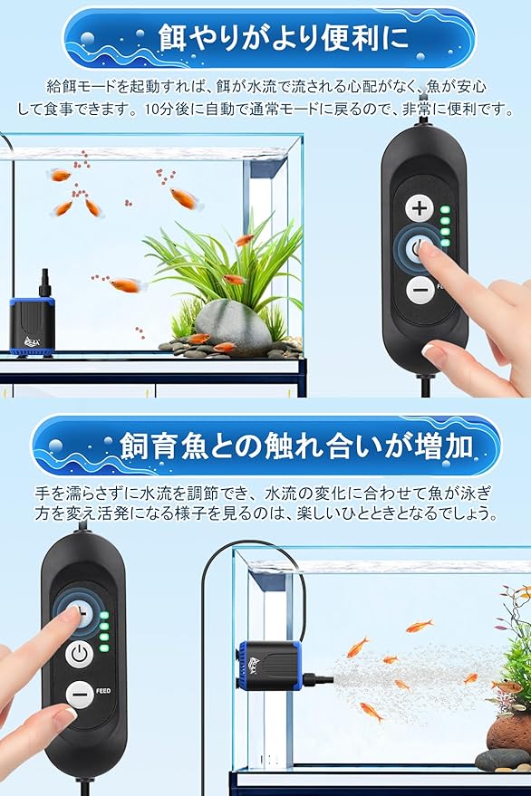AQQA 水中ポンプ 小型ポンプ コントローラー操作可能 排水ポンプ 4段階流量調節 給餌モード機能 吐出量900L/H 最大揚程1.2M 静音 IP68防水 循環ポンプ 給水ポンプ 水槽用ポンプ 電動水ポンプ 水族館給水 水槽水循環 水耕栽培 噴水 (ブルー, 15W) a