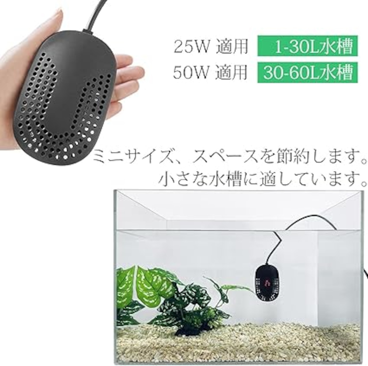 FEDOUR 25W/50W/100Wミニ水槽用ヒーター、デジタル温度表示と外部設定ボタン付きの可調節水槽ヒーター、金魚/メダカ/亀用ヒーター、120L以下の水槽適用 a
