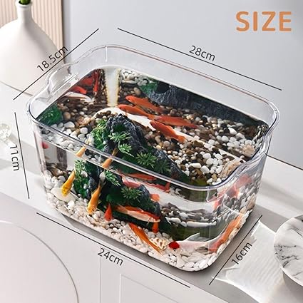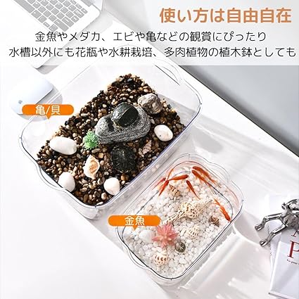 【お部屋を彩る多機能水槽】透明アクリル素材を使用した軽量水槽は、金魚やメダカ、エビなどの観賞にぴったり。大容量で、インテリアとしてもおしゃれな空間を演出します。水槽以外にも花瓶や水耕栽培、多肉植物の植木鉢としても活躍。シンプルでどんなお部屋にもマッチし、自然の癒しを提供。