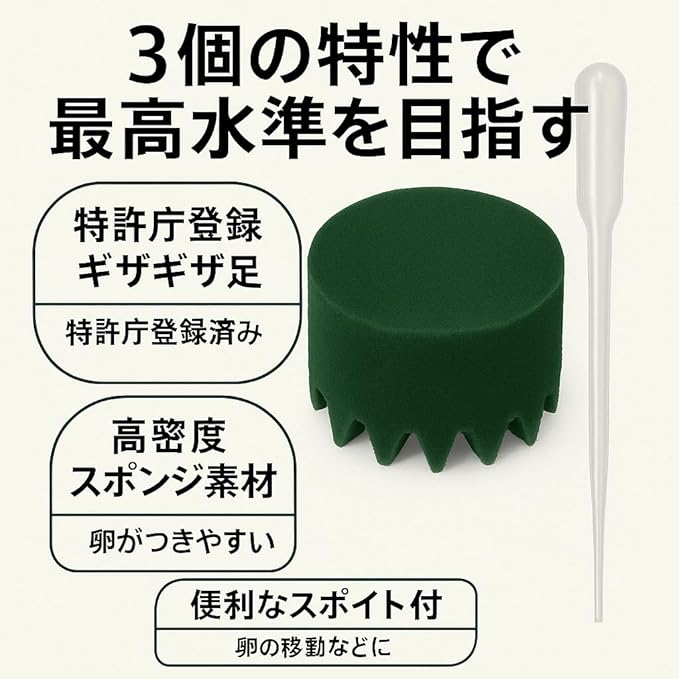 【白カビ抑制ギザギザ足で孵化率アップ!】 卵がしっかり絡みつく独自形状で、産卵・孵化をサポート。水通しが良く酸素が行き渡るので、卵がカビにくく、白カビを抑制し孵化率向上!