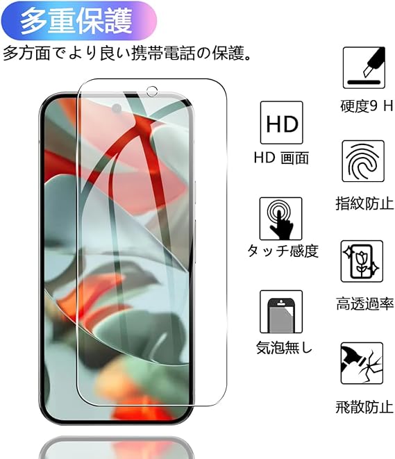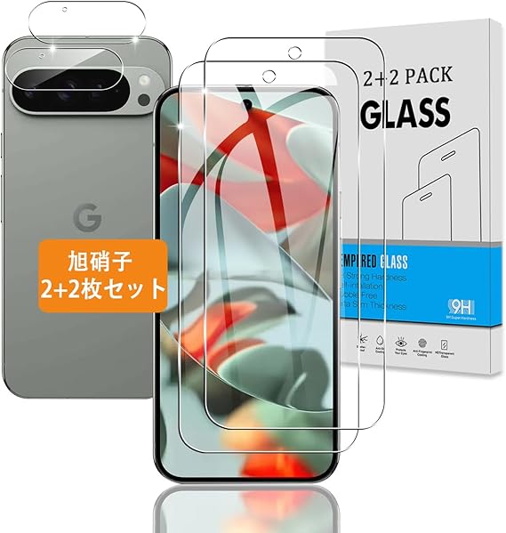 【2+2枚セット 指紋認証鋭敏】 対応 Google Pixel 9 Pro ガラスフィルム + カメラフィルム 【日本旭硝子 硬度9H】 対応 グーグルピクセル9 Pro フィルム 強化ガラス 液晶 保護フィルム 3D Touch対応 、高透過率 、気泡ゼロ 、厚さ0.26mm超薄型 、飛散防止 、高感度 、衝撃吸収 、指紋防止 、ラウンドエッジ加工 、簡単貼り付け a
