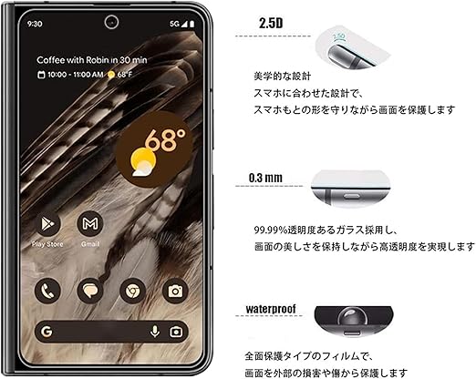 【対応機種】Google Pixel Fold 外画面5.8インチ専用ガラスフィルム、2枚セット。