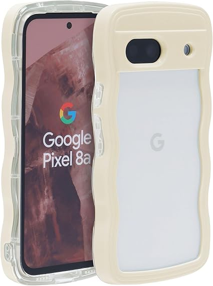 Google Pixel 8A ケース ウェーブ ピクセル 8a うねうね 人気 韓国 耐衝撃 超軽量 薄型 おしゃれ pixel8a なみなみ パステル 可愛い 透明 オタ活 推し活 (クリーム, pixel8a) a