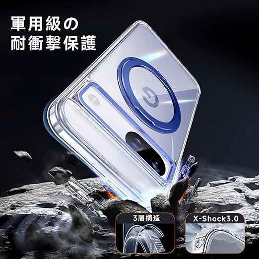 【米軍MIL規格・Magsafe対応】Google Pixel 8A 用 ケース MagSafe対応 リング 360°回転スタンド機能 縦横両対応 半透明 黄ばみ防止 ワイヤレス充電 レンズ保護 耐衝撃 携帯カバー グーグルピクセル8A カバー 6.1 インチ マグネット搭載 車載ホルダー マグセーフ対応 おしゃれ (クリアブルー) a