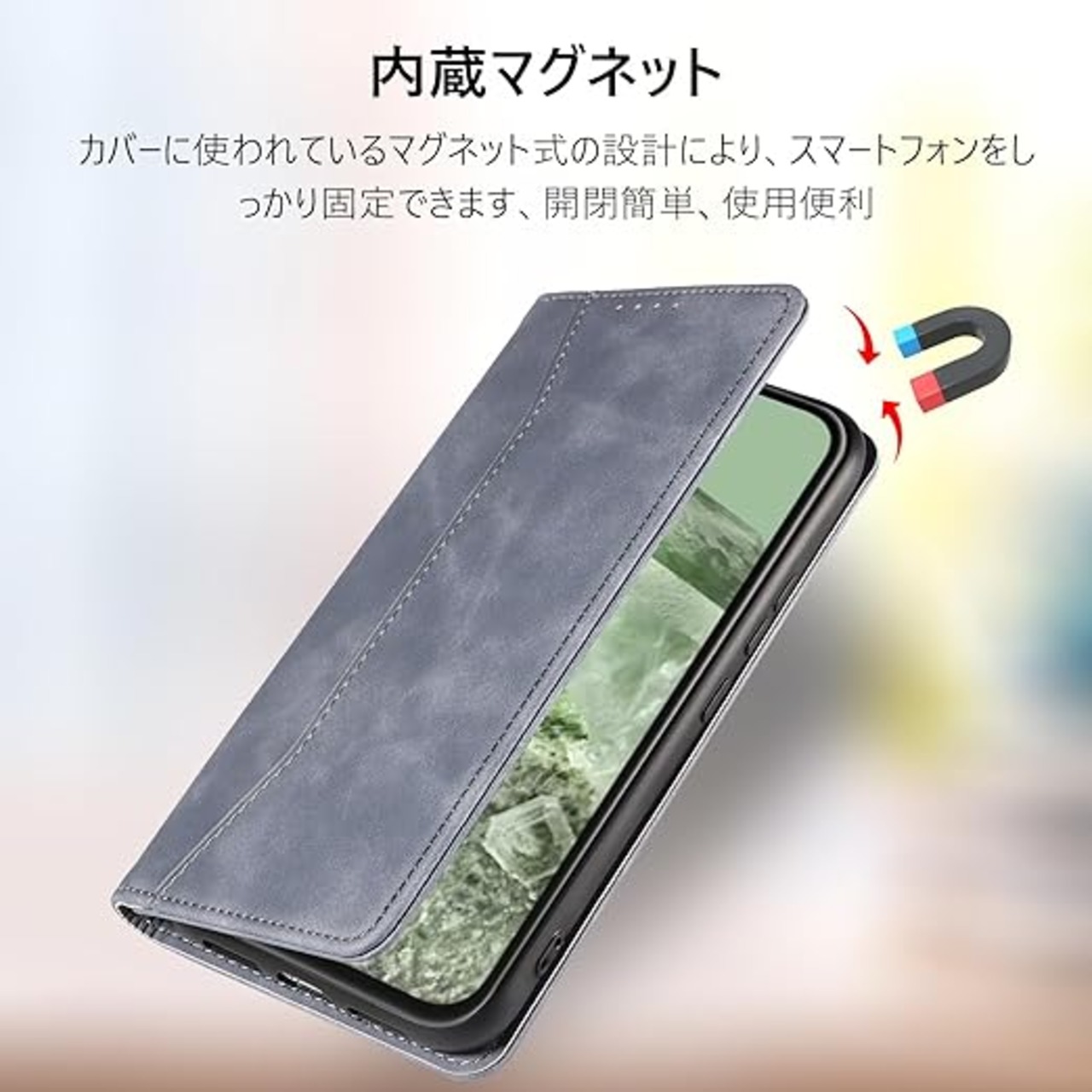 KWATUNG google pixel8a 用 ケース 手帳型 おしゃれ グーグルピクセル8a 用 ケース 手帳型 肌感レザー google pixel 8a 用 ケース 手帳型 内蔵マグネット 耐衝撃 カード収納 スタンド機能 googleピクセル8a 用ケース 手帳型 全面保護 Pixel 8a スマホケース Pixel 8a 用 手帳型ケース グレー a