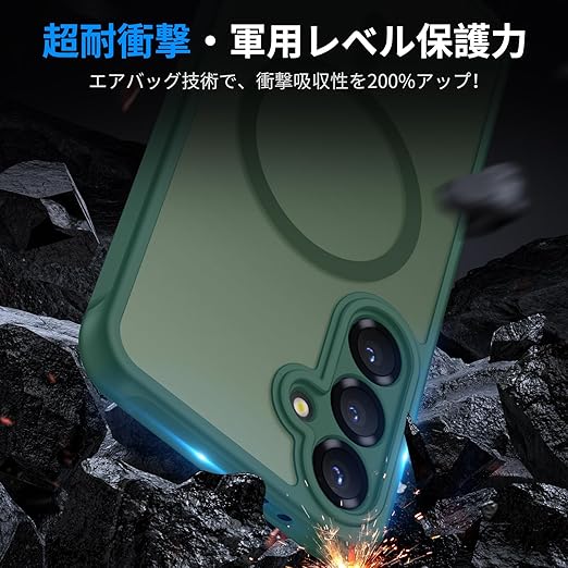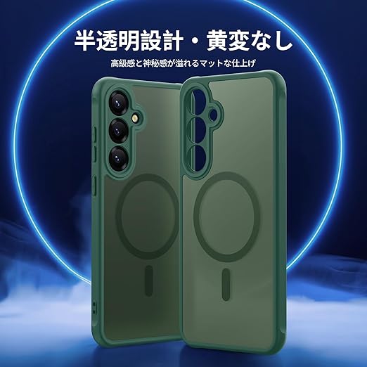 【MagSafe対応・米軍規格】Holidi Galaxy S25 ケース MagSafe マット感 マグネット搭載 米軍MIL規格 全面保護 ワイヤレス充電 黄変なし 二重構造 ギャラクシーs25 ケース Magsimpl-Series 半透明・グリーン a