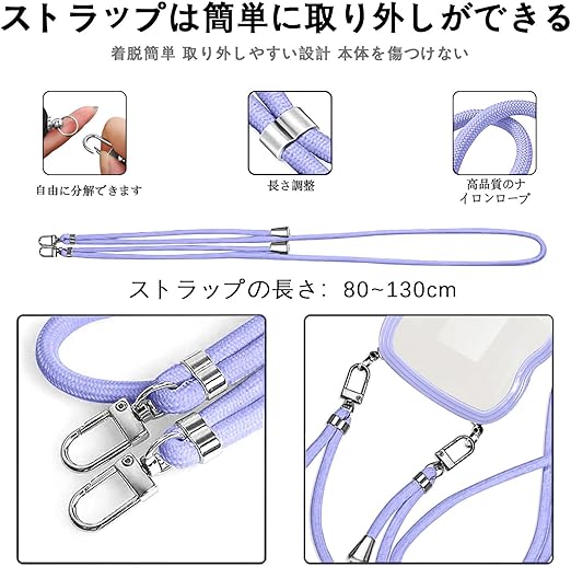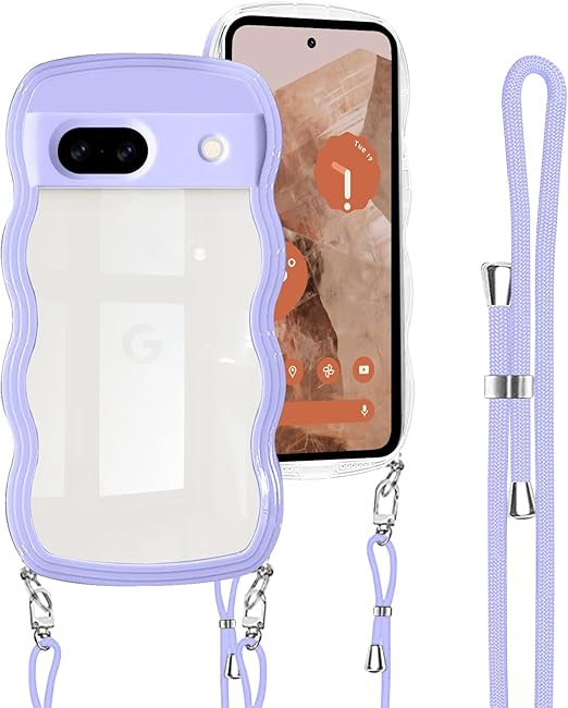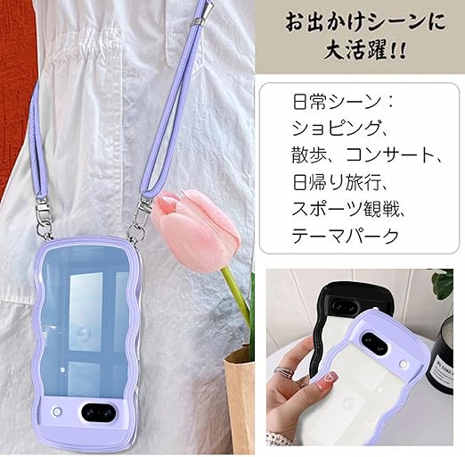 Google Pixel 8a 用 ケース クリア ショルダー グーグル ピクセル8a 用 カバー 透明 首掛け 肩がけ 斜めかけ 紐付き ストラップ付き 韓国 かわいい TPU 薄型 軽量 耐衝撃 バンパー pixel 8a 用 スマホケース (パープル) a