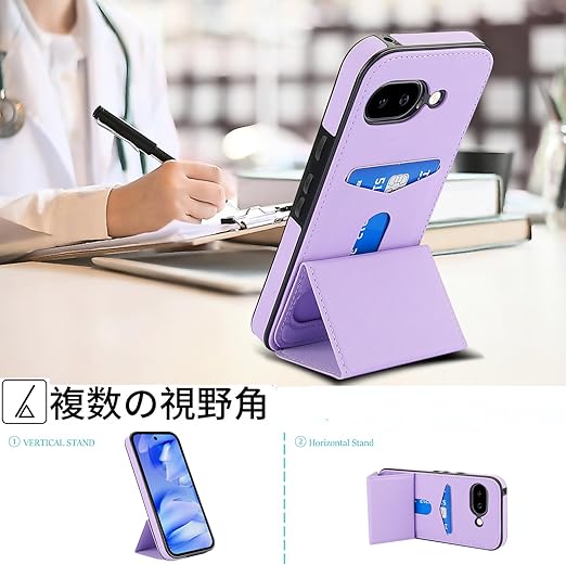 NKECXKJ Google Pixel 9aカード収納 スマホケース + グーグルピクセル9a ?化 ガラス フィルム PUレザー 折畳式 スタンド機能 携帯ケース 軽量 衝撃吸収 Case Cover Pixel9a ピクセル 9 a Google9aケース ぐー来るぴくせる9a グーグルgoole9a 財布型ケース 背面 カバー レディース(パープル) a