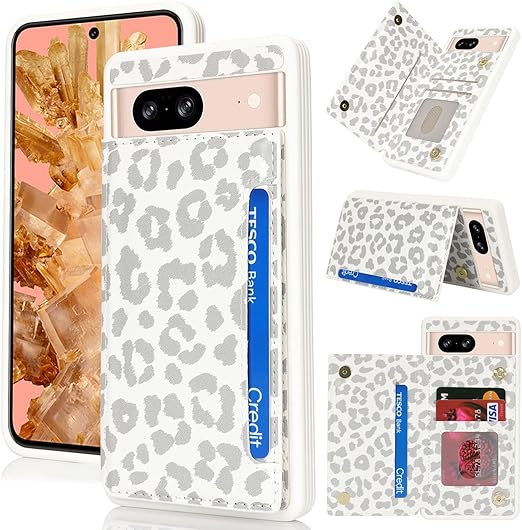 Sailortech Google Pixel 8 5G 背面ケース 翻盖型 ピクセル8 ケース手帳 ピクセル8 カバー 財布背面手机?ケース 収納付き 磁気クラスプ 小銭入れ IC カード収納 財布型 実用 横置き機能 防塵 ?量 落下防止 google pixel 8ケース 背面収納 携帯カバー【選べる7色】6.2in-ホワイトレオパード a
