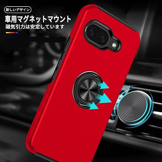 JSCOMYAP Google Pixel 9a ケース用, pixel9a スマホケース + グーグルピクセル9a ?化 ガラス フィルム リング付き スタンド機能 耐衝撃 衝撃 スマホカバー Case Cover googleピクセル9a ぐーくるぴくせる9a グーグル ピクセル 9a ケース pixel 9a 背面 カバー メンズ(赤) a