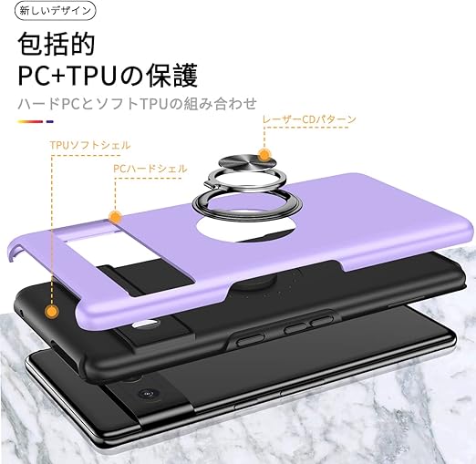 Pixel 7 Pro ケース用 Pixel7pro スマホケース + Google 7pro ?化 ガラス フィルム リング付き スタンド機能 携帯ケース 耐衝撃 衝撃 スマホカバー Case Cover Google 7proケース グーグルピクセル7 ピクセル pixel7pro sever プロ グーグルgoole7pro けース 背面 カバー メンズ 6.7インチ (紫の) a