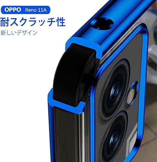 OPPO Reno11 A 用 ケース A401OP CPH2603 バンパー 透明TPU 耐衝撃 青メッキ加工 リング ストラップホール付き スタンド機能 車載ホルダー対応 滑り止め 落下防止 (ブルー) a