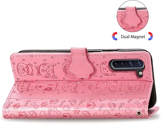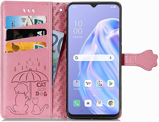 OPPO Reno3 A 用 ケース 手帳型 おしゃれ 可愛い アニマル 猫 ストラップ付き マグネット式 カード収納 小銭入れ スタンド機能 OPPO Reno3 A かわいい ネコ 犬 手帳 カバー スマホケース (ピンク) a